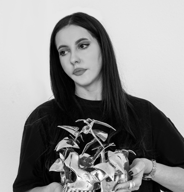 Mattioli works across digital and physical media, producing sculptures that bridge virtual processes and material form. A member of the Kinema Ikon collective and coordinator of Atelier 35 in Bucharest, her work explores speculative realities between utopian and dystopian futures through processes of organic–digital hybridization.